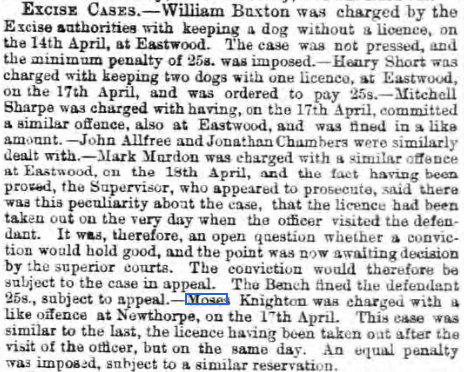Newspaper clippings Moses Knighton Junior and a story about three boys stealing from his shop Moses Knighton Senior and a article about his prosecution for not having a dog licence Share this: Click to share on X (Opens in new window) X Click to share on Facebook (Opens in new window) Facebook Click to share on LinkedIn (Opens in new window) LinkedIn Like Loading...